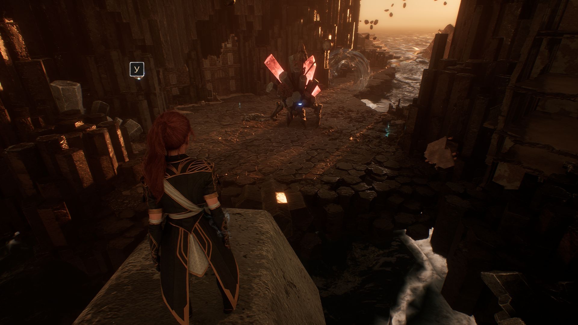 Теперь пройдите немного налево и уничтожьте третий замок, мерцающий над шестигранным камнем.