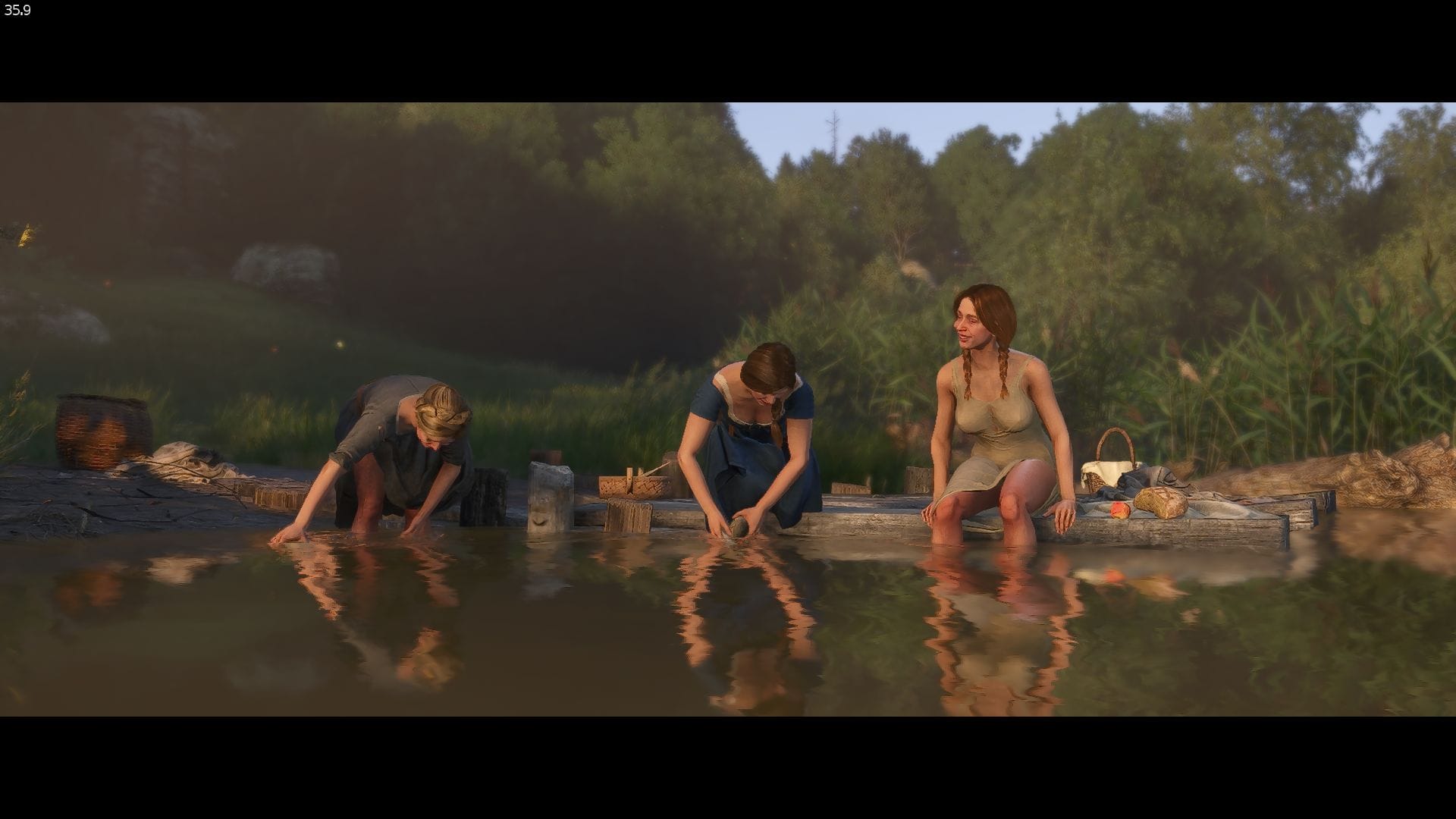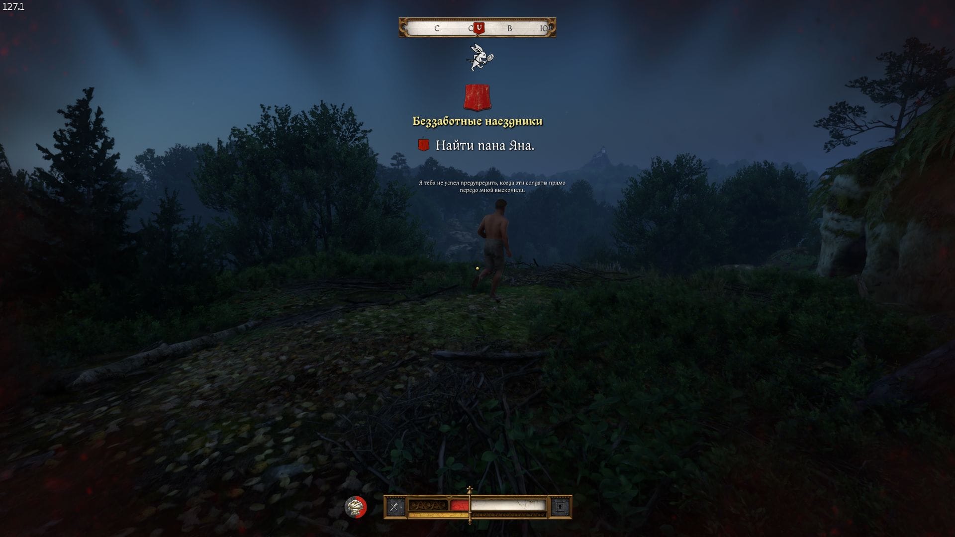 После разговора герои решат расслабиться и искупаться. Неподалеку заметим девушек, решивших постирать вещи в озере. Ян предложит подглядеть за ними — это наше обучение скрытности, игра продемонстрирует новую механику.