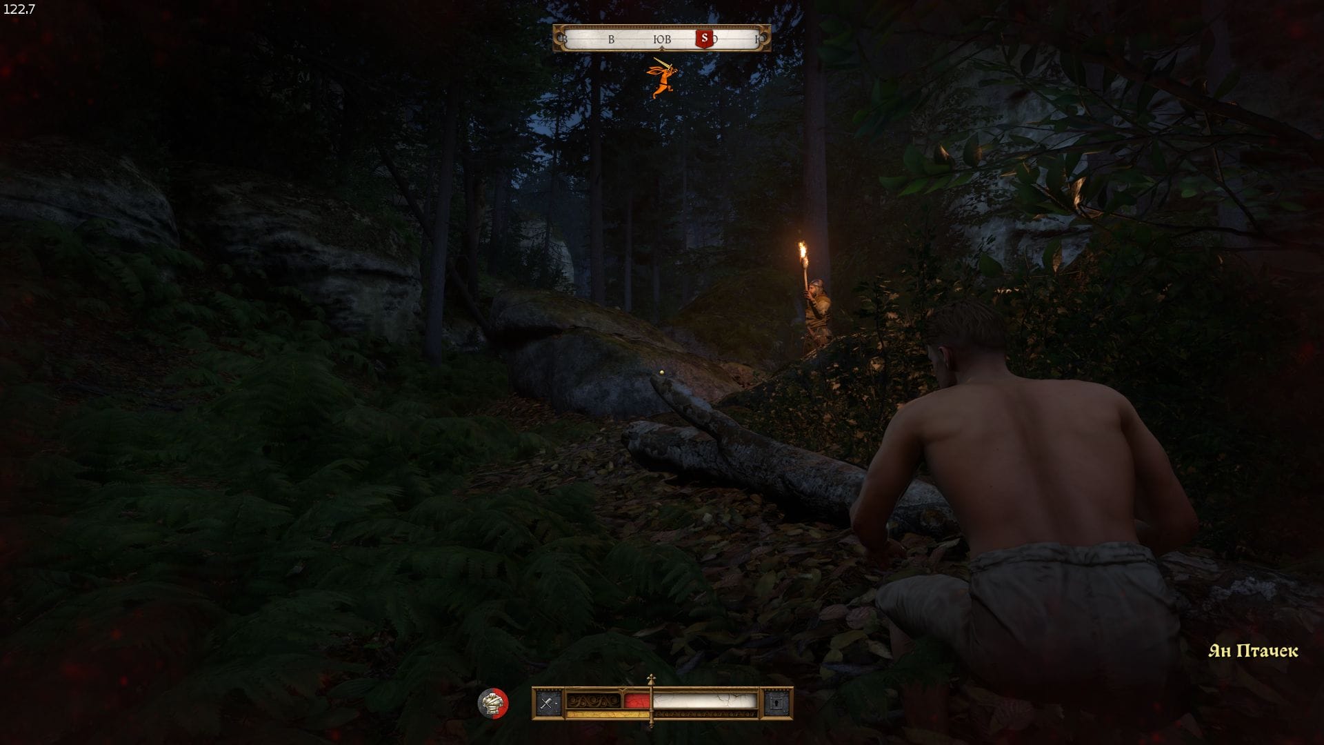 На выходе справа возле дерева найдем Яна. Он будет ждать нас в кустах.